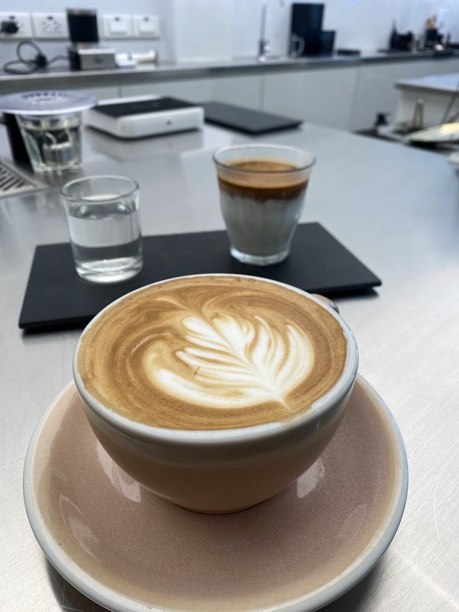 As you step inside, you are greeted by a stunningly pristine white interior that radiates calm and creativity. The modern, open layout combined with cozy bar-style seating creates an inviting atmosphere for both a quick coffee run or a leisurely chat with friends. This spot is not just a cafe but an ode to the art of coffee-making.
